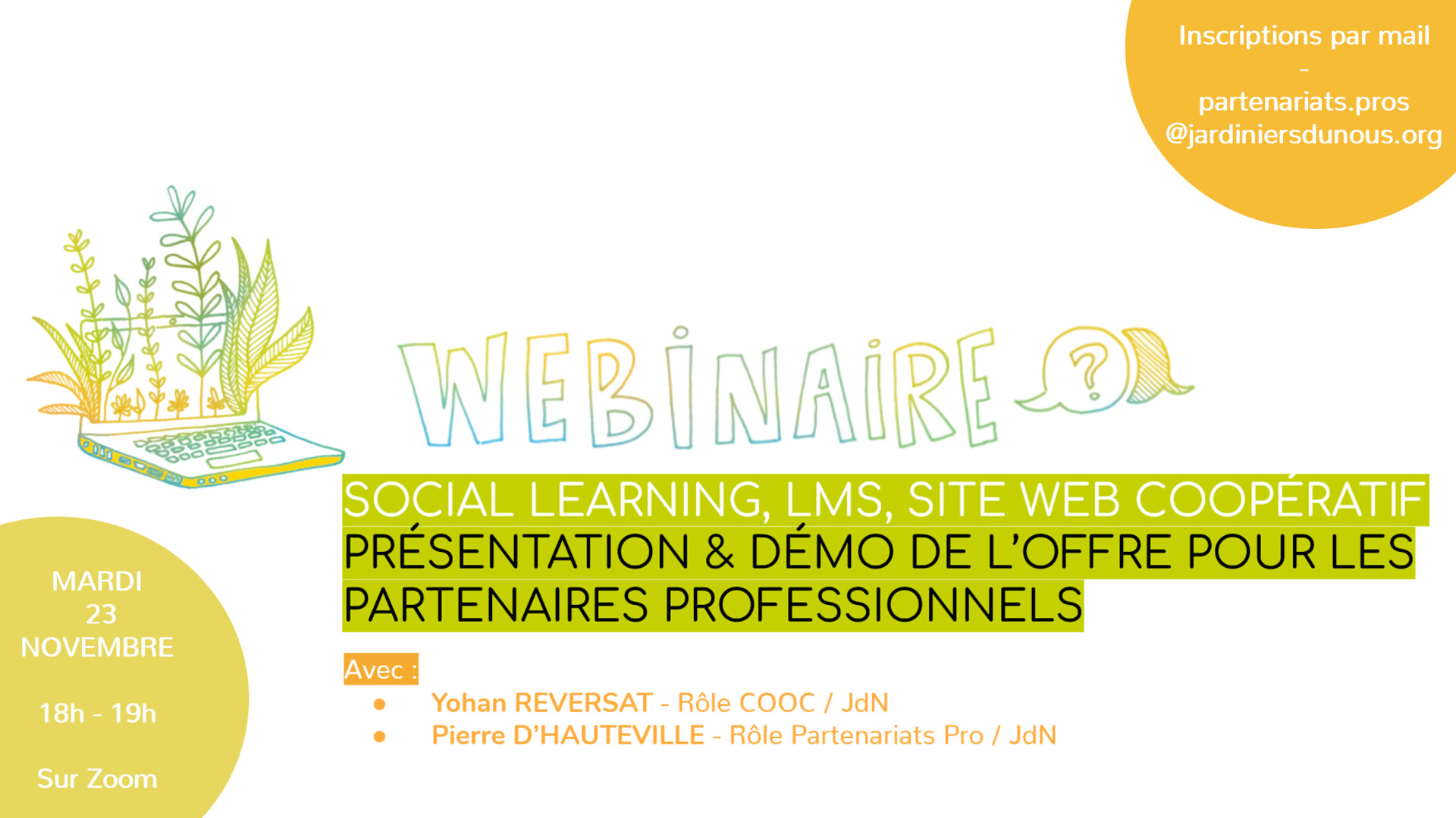 Pour t’inscrire et recevoir le lien de connexion, envoie un mail à partenariats.pros@jardiniersdunous.org
