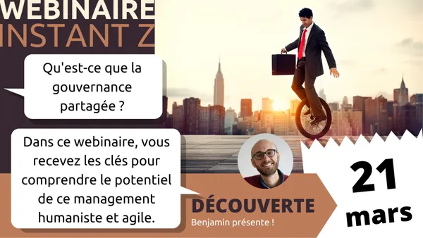 Consultant et formateur en gouvernance partagée, Benjamin de l’Instant Z vous montrera pourquoi et comment le rôle et les tâches du manager peuvent être reparties au sein d’une équipe de travail pour plus d’efficacité, d’engagement des membres et d’agilité dans l’organisation.