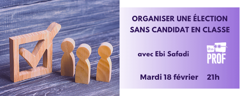 Et si vous organisiez dans votre classe une élection où aucun candidat ne serait présenté ? Une élection où les gagnants seraient élus pour leurs compétences envers le groupe ? On dirait un mythe, et c’est pourtant le dispositif qu’Ebi Sabadi, professeur de technologie en collège et professeur principal, a mis en place dans sa classe. Mardi 18 février à 21h, il parlera des enjeux de ce dispositif , de sa mise en place concrète et des points de vigilance à avoir. Pendant 30 minutes d’échanges en direct avec Marie-Laure, Ebi en profitera pour répondre à toutes vos questions pour que vous puissiez à votre tour lancer cette élection sans candidat dans votre classe (ou même avec vos proches !).