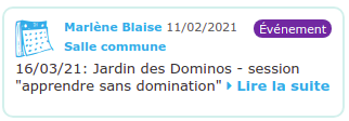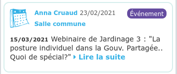 Je viens de voir que sur les flash info, la date des événements n’est pas marqué mais la date ou le post à été fait… et du coup ca créé du flou selon moi… exemple ci dessous : le webinage 3 est le 23 mars et le poste date du 23 février…on a l’impression que c’est passé… Possible de faire qq chose?